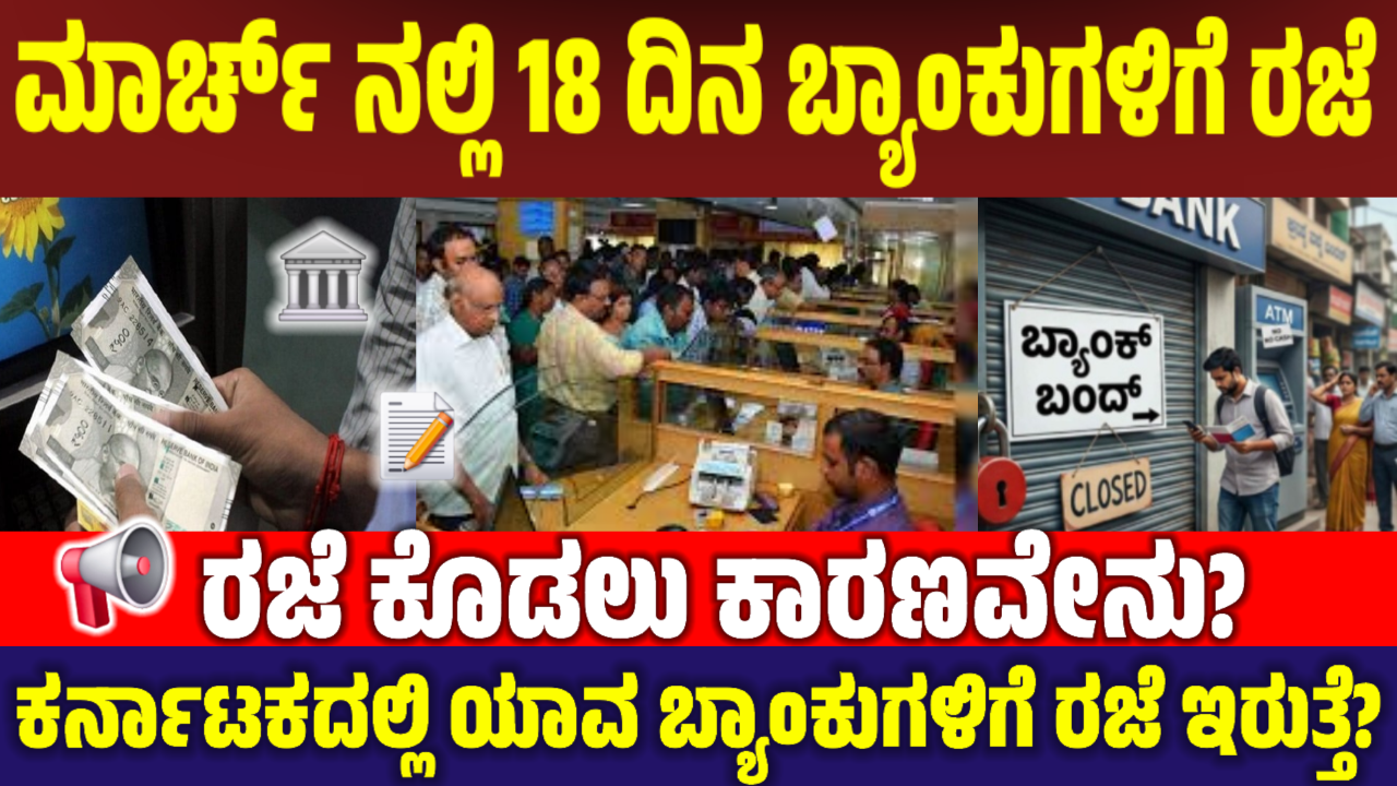 ಮಾರ್ಚ್ ತಿಂಗಳಲ್ಲಿ ಬ್ಯಾಂಕುಗಳಿಗೆ 18 ದಿನಗಳು ರಜೆ ಇರುತ್ತೆ? ಯಾವ ದಿನಾಂಕದಂದು ರಜೆ, ಯಾಕೆ ರಜೆ ಸಂಪೂರ್ಣ ಮಾಹಿತಿ!