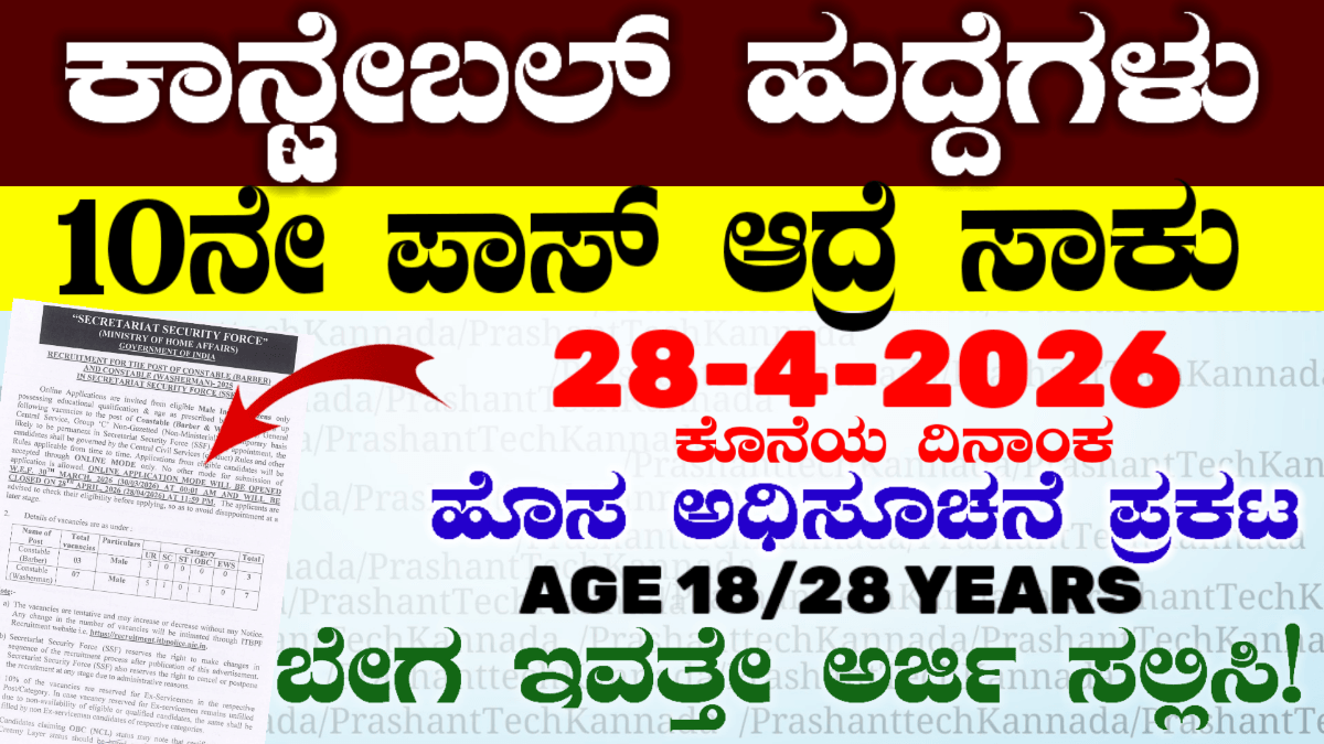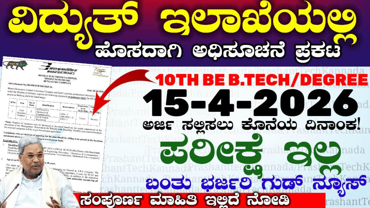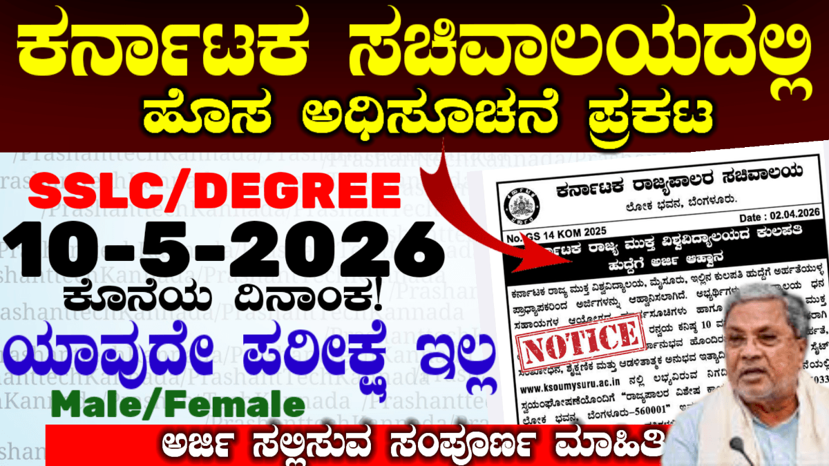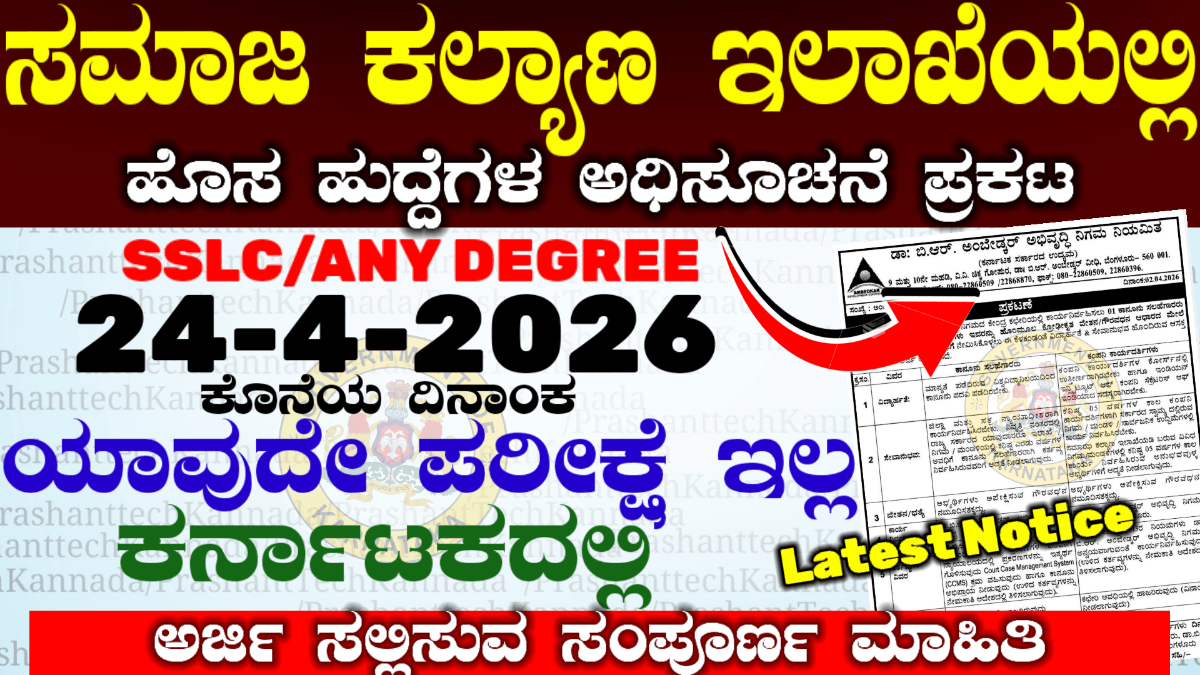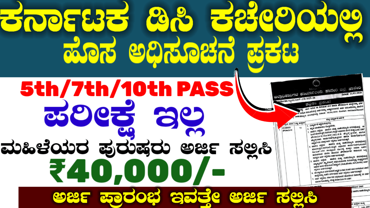 ಕರ್ನಾಟಕ ರಾಜ್ಯದಲ್ಲಿ ಜಿಲ್ಲಾ ಕಲೆಕ್ಟರ್ ಆಫೀಸಿನಲ್ಲಿ ಅರ್ಜಿ ಕರೆಯಲಾಗಿದೆ ಕೆಲಸಕ್ಕಾಗಿ ಅಲೆದಾಡುವ ಅಭ್ಯರ್ಥಿಗಳಿಗೆ ಇದೊಂದು ಒಳ್ಳೆಯ ಅವಕಾಶ ಇಲ್ಲಿ ಯಾವುದೇ ರೀತಿಯ ಪರೀಕ್ಷೆ ಇಲ್ಲ ಮತ್ತು ವಿದ್ಯಾರ್ಹತೆನೆ ಬೇಕಾಗಿಲ್ಲ. ದಿನಾಂಕ 01-4-2026 ರಂದು ಅಧಿಕೃತವಾಗಿ ನೋಟಿಸ್ ಪ್ರಕಟ ಮಾಡಿದೆ ಕರ್ನಾಟಕ ಜಿಲ್ಲಾ ಪುರಸಭೆ ಮತ್ತು ಡಿಸಿ ಕಚೇರಿ ಹುದ್ದೆಗಳಿಗೆ ನೇಮಕಾತಿ ನಡೆಯುತ್ತಿದೆ ಮಹಿಳೆಯರಿಗೆ ಅತಿ ಹೆಚ್ಚು ಅಭ್ಯರ್ಥಿಗಳನ್ನು ಒದಗಿಸಲಾಗುವುದು. ಆಫ್ ಲೈನ್ನಲ್ಲಿ ಅವಕಾಶ ಕೊಟ್ಟಿದ್ದು ದಿನಾಂಕ ಏಪ್ರಿಲ್ ಒಂದರಿಂದ ಅಧಿಸೂಚನೆ ಮತ್ತು ಆಫ್ಲೈನ್ ನಲ್ಲಿ ಅವಕಾಶ ಇದೆ … Read more