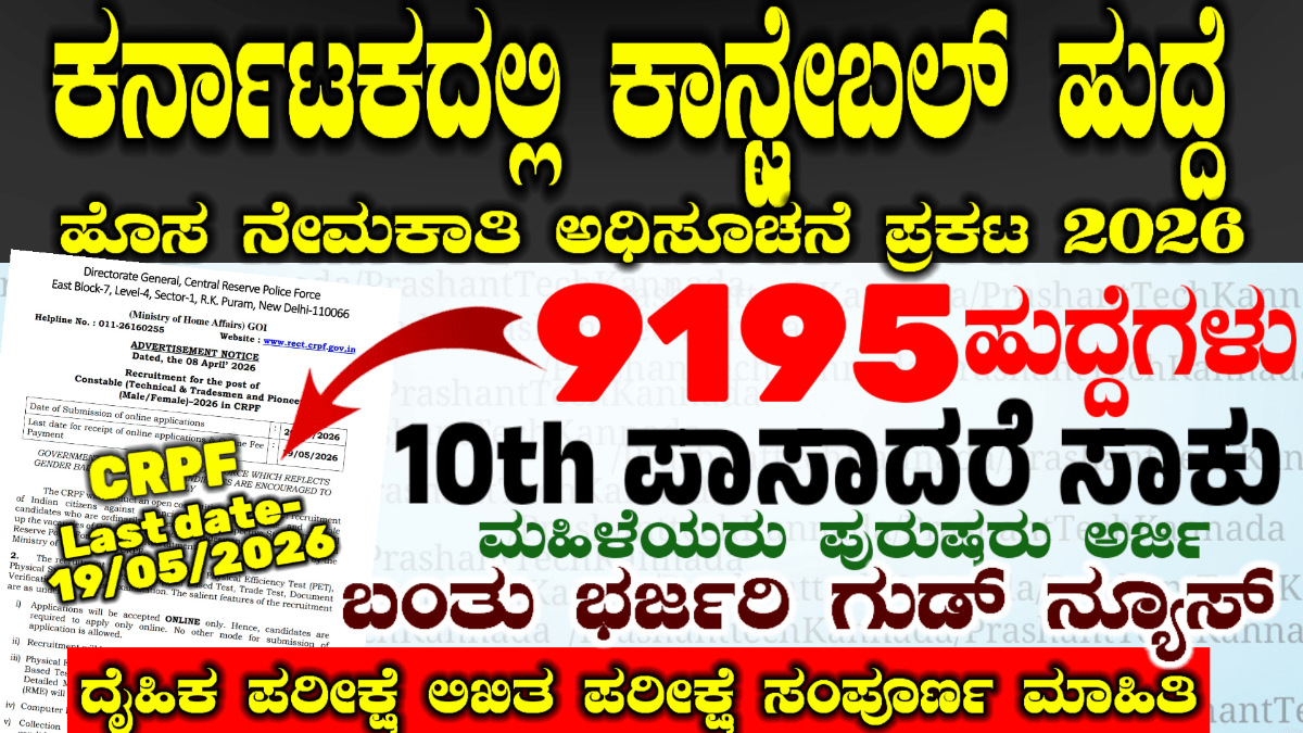 CRPF ಕಾನ್ಸ್ಟೇಬಲ್ ನೇಮಕಾತಿ 2026: 9195 ಹುದ್ದೆಗಳು | 10th Pass Apply Online, Salary, Age Limit Full Details