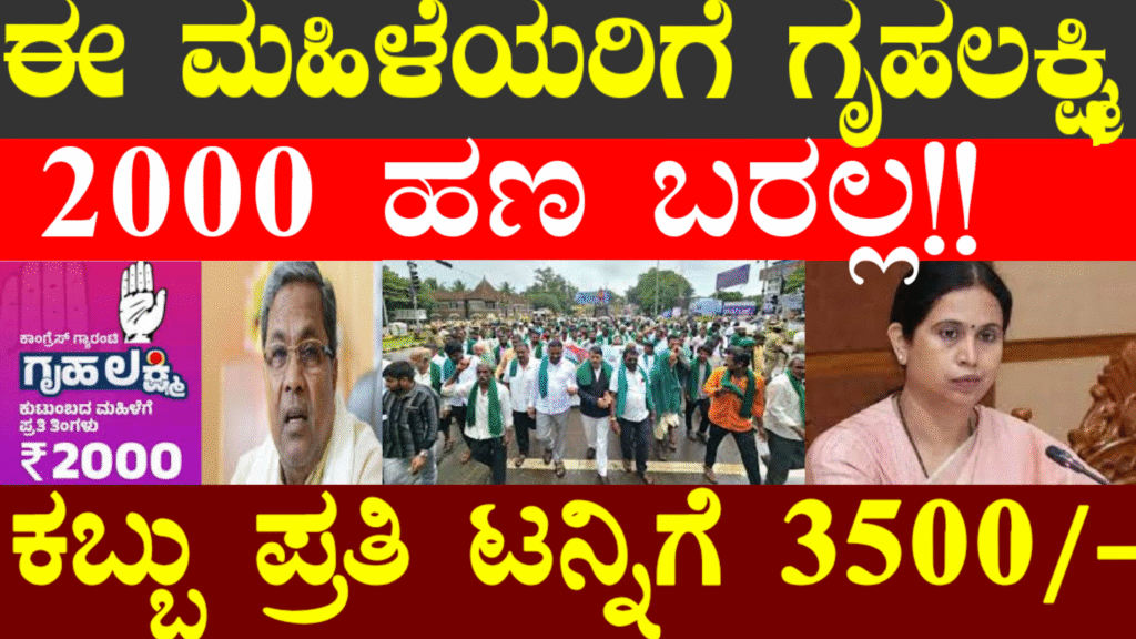 ಈ ಮಹಿಳೆಯರಿಗೆ ಗೃಹಲಕ್ಷ್ಮಿ ಹಣ ಬರಲ್ಲ & ಕಬ್ಬು ಬೆಳೆದ ರೈತರಿಗೆ ಗುಡ್ ನ್ಯೂಸ್ ಪ್ರತಿ ಟೆನ್ನಿಗೆ 3500/-