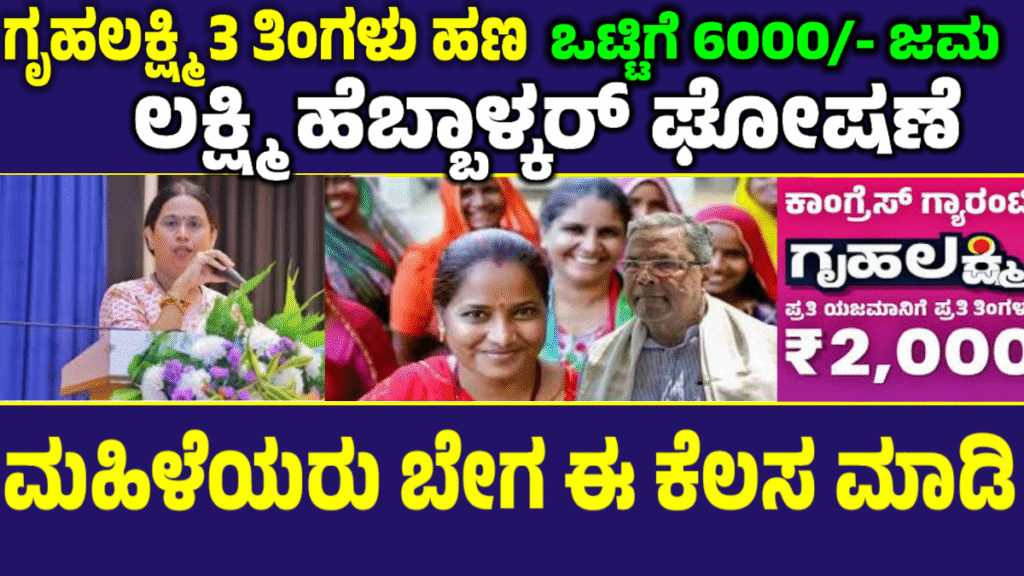 ಗೃಹಲಕ್ಷ್ಮಿ ಮೂರು ತಿಂಗಳು ಒಟ್ಟಿಗೆ ಆರು ಸಾವಿರ ಹಣ ಬಿಡುಗಡೆ.?