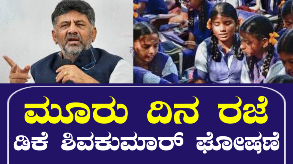 ಮೂರು ದಿನ ವಿಶೇಷ ರಜೆ ಘೋಷಣೆ ಯಾರಿಗೆ ಯಾವಾಗ ಕಾರಣವೇನು? ಡಿಕೆ ಶಿವಕುಮಾರ್ ಮಹತ್ವದ ಘೋಷಣೆ ಇದರ ಬಗ್ಗೆ ಸಂಪೂರ್ಣ ಮಾಹಿತಿ ಇಲ್ಲಿದೆ!!