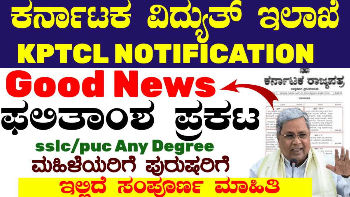 ಅಧಿಕೃತವಾಗಿ ಸರ್ಕಾರ ಕರ್ನಾಟಕ ರಾಜ್ಯ ವಿದ್ಯುತ್ ಅಭಿವೃದ್ಧಿ ನಿಗಮ ನಿಯಮಿತ ಫಲಿತಾಂಶ ಪ್ರಕಟಗೊಂಡಿದ್ದು.