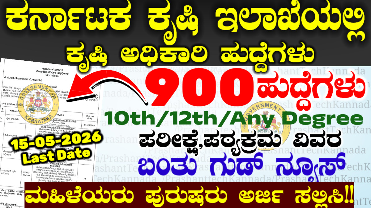 ಕರ್ನಾಟಕದಲ್ಲಿ ಕೃಷಿ ಇಲಾಖೆಯಲ್ಲಿ ಕೃಷಿ ಅಧಿಕಾರಿ ಹುದ್ದೆಗೆ ನೇಮಕಾತಿ ನಡೆಯುತ್ತಿದೆ 890 ಕಿಂತ ಅಧಿಕ ಹುದ್ದೆಗೆ ನೇಮಕಾತಿ 2026 – ಈ ನೇಮಕಾತಿ ಯಾವುದೇ ಕಾರಣಕ್ಕೂ ಮಿಸ್ ಮಾಡಿಕೊಳ್ಳಬೇಡಿ ಸಂಪೂರ್ಣ ಮಾಹಿತಿ ನೋಡಿ.