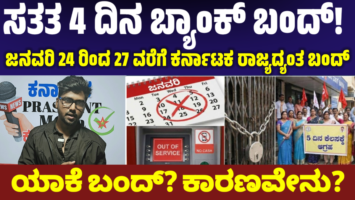 ಕರ್ನಾಟಕದಲ್ಲಿ 4 ದಿನ ಬ್ಯಾಂಕುಗಳಿಗೆ ರಜೆ! ಕಾರಣವೇನು? ಸಂಪೂರ್ಣ ವಿವರ