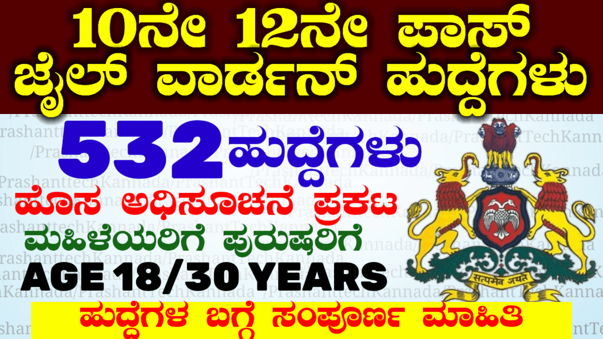 10ನೇ ಪಾಸ್ ಆದವರಿಗೆ ಭರ್ಜರಿ ಗುಡ್ ನ್ಯೂಸ್! 🔥 532 Jail Warden ಹುದ್ದೆಗಳ ನೇಮಕಾತಿ – 28 ಏಪ್ರಿಲ್ ಕೊನೆಯ ದಿನಾಂಕ